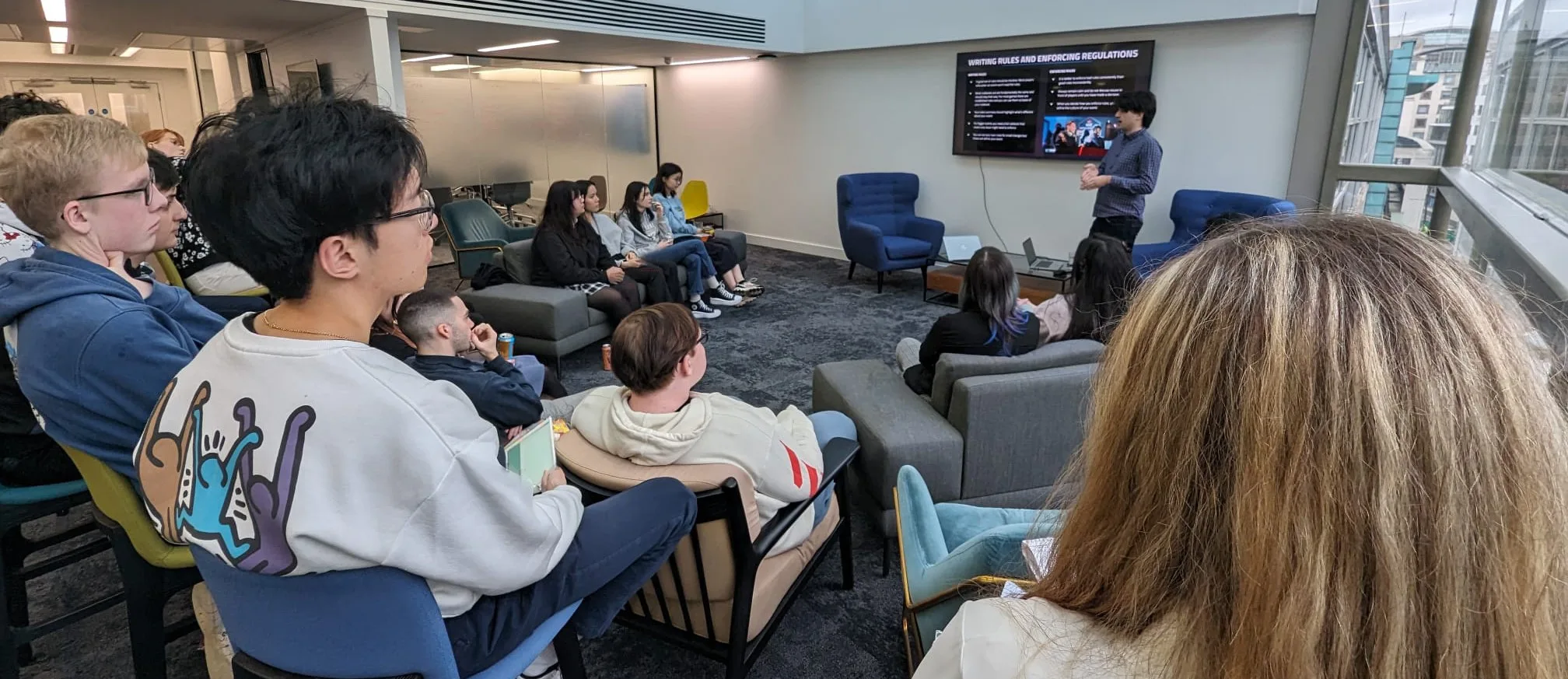 After a little break we then had NSE's Head of League Operations Chris or as many more students know him - Hench, give an introduction on what goes into esports tournament operations. There is a lot that goes into the running of multiple esports events behind the scenes, the students gained more of an insight and what key elements need to be considered.